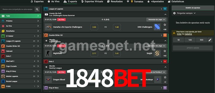 O 1848bet oferece uma grande seleção de opções de apostas em e-sports com probabilidades competitivas